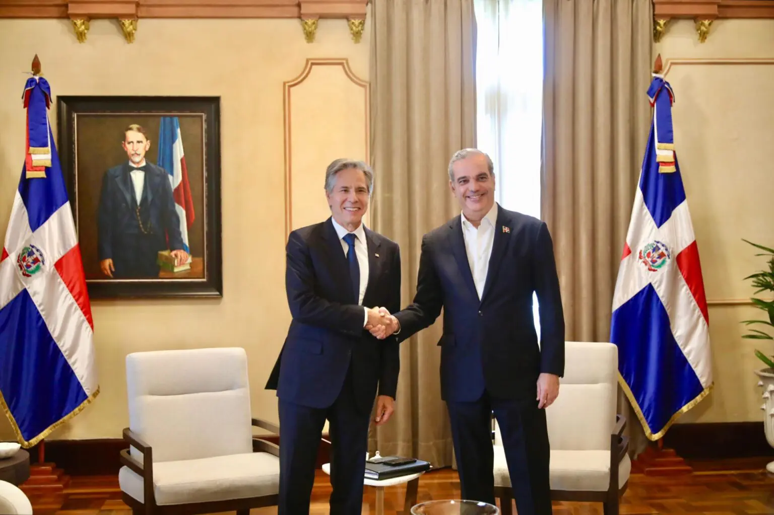 Santo Domingo .- El presidente de la República, Luis Abinader, recibió este viernes en visita oficial en el Palacio Nacional, sede del Gobierno de la República Dominicana, al secretario de Estado de Estados Unidos, Antony J. Blinken.
