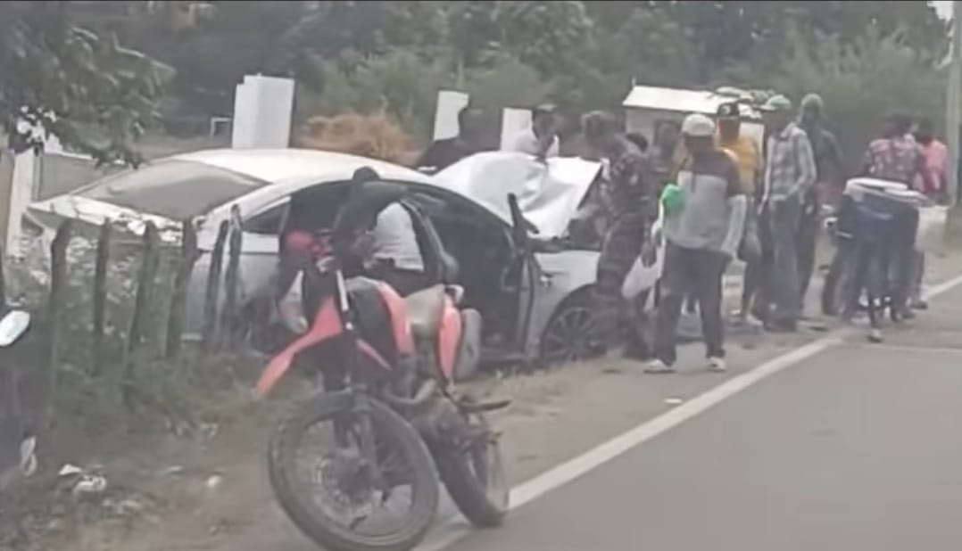 Montecristi.- Un accidente de transito que dejo un vehículo parcialmente destruido en la parte delantera y personas lesionadas, ocurrió la tarde este domingo, en la autopista Manolo Tavares Justo, tramo Carbonera.