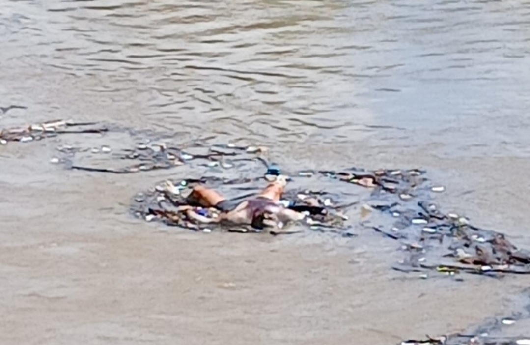 El cadáver fue avistado a media mañana del domingo, por personas que transitaban por encima del puente sobre el río en Palo Verde, semi cubierto por escombros, junto a las embravecidas aguas del afluente que presenta fuertes crecidas desde hace varios dias.