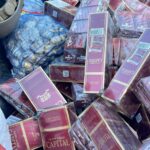 También figuran 94 paquetes de de cigarrillos Capital de 10 cajetillas de 20, para un total de 18,000 unidades y 59 paquetes de cigarrillos Point, de 10 cajetillas de 20, sumando 11,800 unidades. Además tres sacos de ajo, para un aproximado de 75 libras.