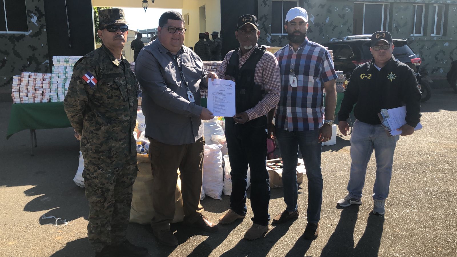Las mercancías incautadas entre las que figuran Whisky de las marca Blac Stop, Nelson, Bacará, Barbancou, Cervezas de la Marca Prestige, Cigarrillos de la marca Point, hil figer, Comen fau, crema de mantenimiento facial, Sopitas de diferentes marcas, perfumes, bebida energizante toro, leche evaporada, garrafones de ron artesanal Cleren y otros, fueron entregados por el coronel Paino Sanchez Perdomo, comandante del décimo batallón y miembros del servicio de  inteligencia G2, a los funcionarios de aduanas Juan Montalvo, colector y Josue Diaz, encargado de exportaciones.