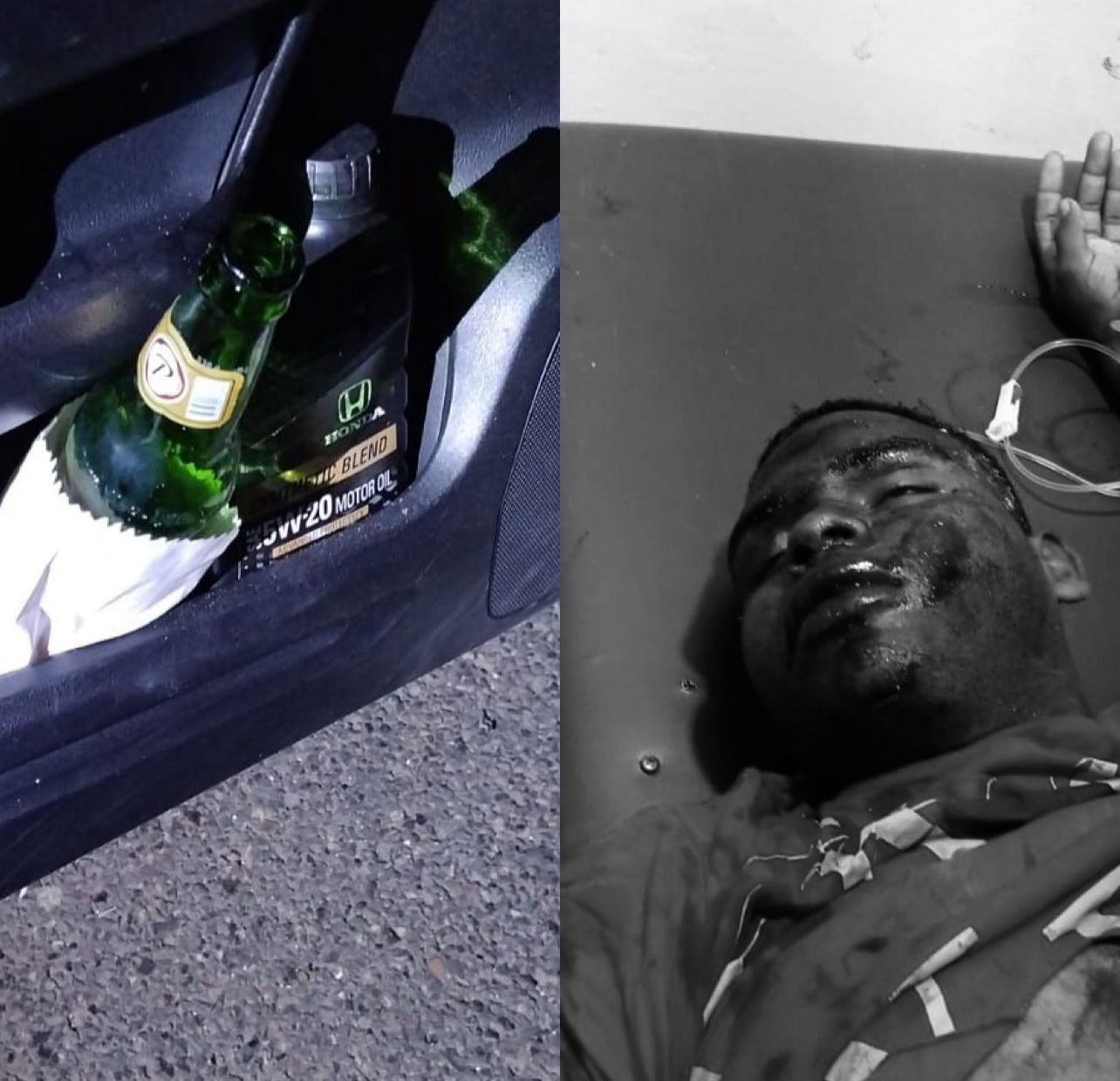 En una de las puertas delantera del vehículo marca Honda CVR, color blanco, placa G501524, cuyo conductor emprendió la huida a Pie, fue encontrada una botella de cerveza fria, la cual estaba utilizando al momento del trágico accidente que consternó los presentes en el lugar.