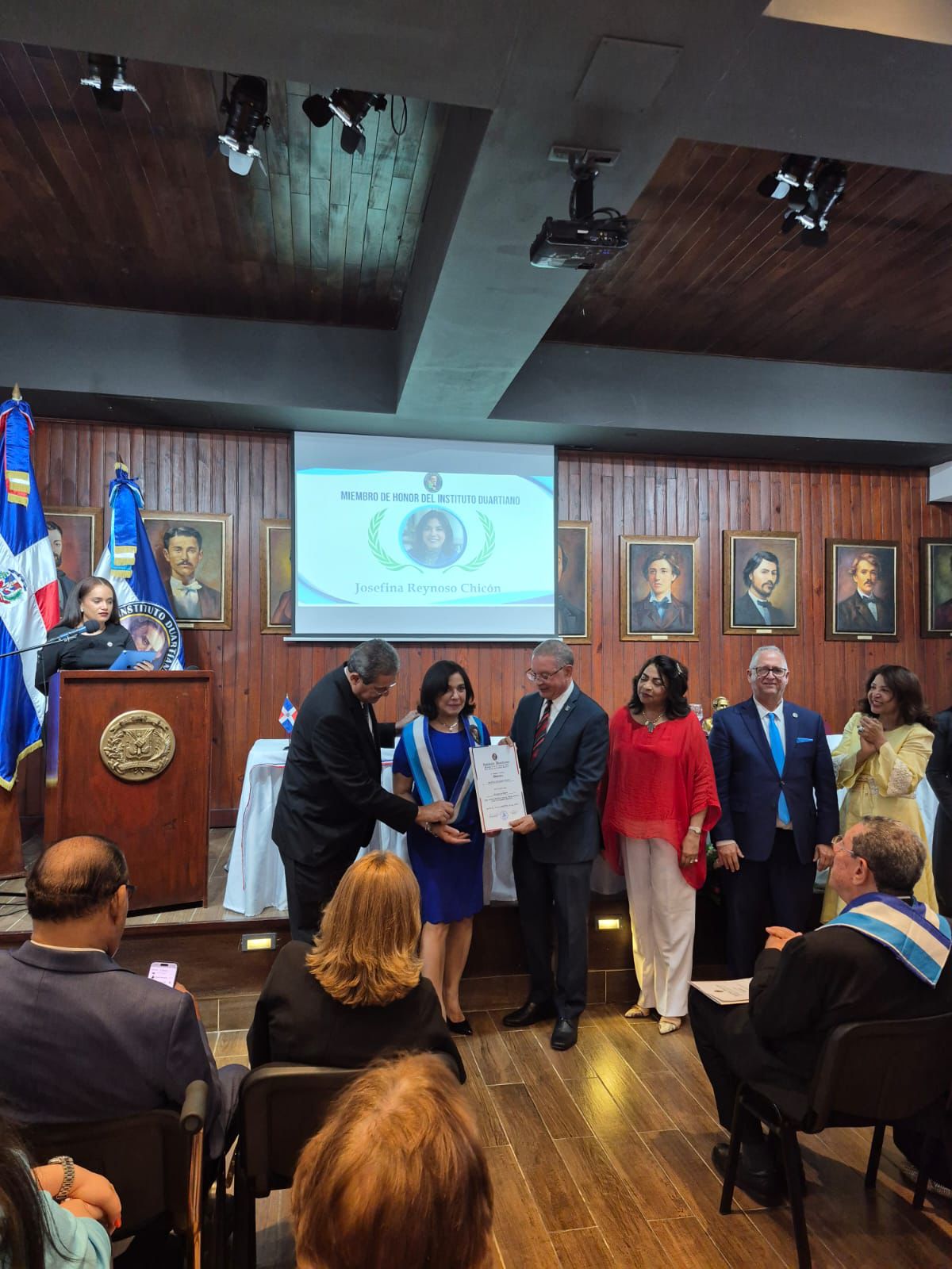 Santo Domingo. – El Instituto Duartiano reconoció a la doctora Josefina Reynoso Chicón con la distinción de Miembro de Honor, en atención a su sobresaliente trayectoria académica y estratégica en los estudios de seguridad y defensa de la República Dominicana.