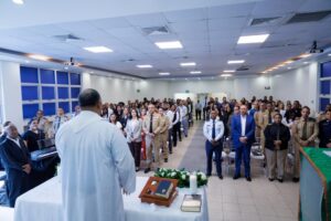 El Capellán Castrense, Capitán de Fragata Federico Marcial, ARD., también se dirigió a los presentes, animándolos a perseverar en la búsqueda del bien común dentro del marco de la justicia. Encomendó a los servidores de la institución a manejarse con sabiduría, entendimiento, fortaleza y un corazón justo para que su labor produzca frutos de paz, orden, respeto y dignidad humana.
