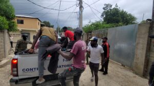 Dajabón. – Miembros del equipo de Interdicción de la Dirección General de Migración ¨DGM¨, detuvieron más de 30 haitianos indocumentados, luego de que protagonizaron una riña en el sector ¨Hoyo de Lima¨ en esta ciudad, donde al menos uno fue reportado agredido por arma blanca por otro de sus compatriotas.