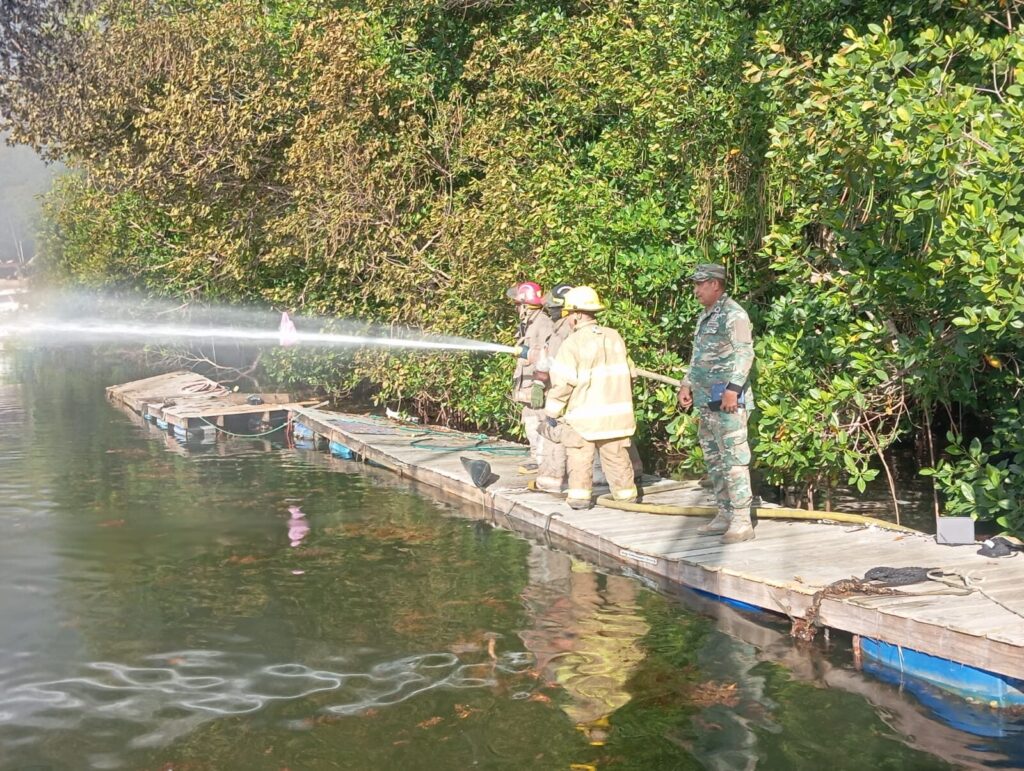 Unidades del Cuerpo de Bomberos de San Pedro de Macorís, con el apoyo de la Armada de República Dominicana, acudieron al lugar para sofocar las llamas y evitar que el fuego se propagara a otras embarcaciones o comprometiera la infraestructura del muelle.