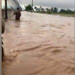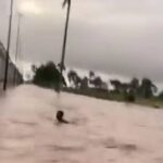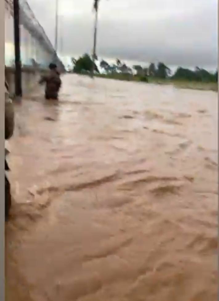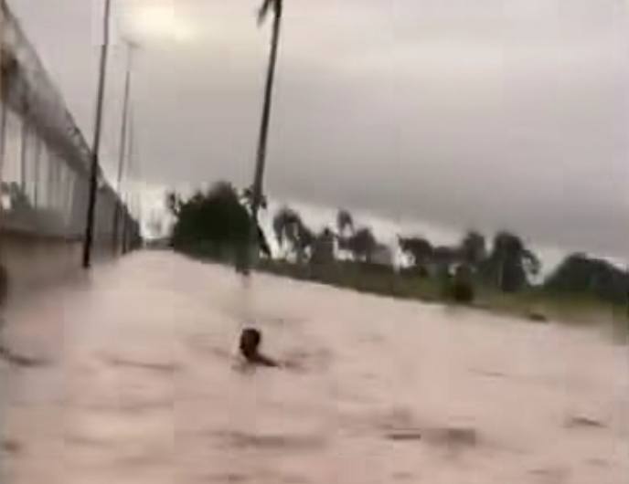 Las imagenes dan cuenta de varios militares que tuvieron que moverse nadando desde un puesto para buscar refugio en una las torres que funcionan como garitas a orilla del muro que divide esta parte de la frontera con el departamento de Juana Méndez Haiti.