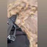 Fusiles y mochilas en manos, se aferran a las paredes de la verja perimetral, para no ser arrastrados por las embravecidas aguas desbordadas del río Dajabón.
