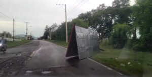 La briza también derribó letreros y vallas, siendo necesario la utilización de equipos y maquinarias del sector privado para resolver varias situación que afectaron establecientes comerciales.